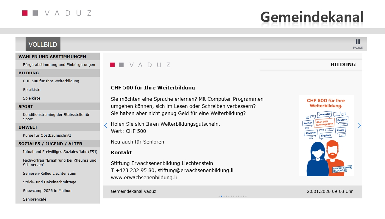 Das Projekt „Umsetzung Weiterbildungsstrategie“ trägt dazu bei, ein zukunftsorientiertes, inklusives und nachhaltiges Weiterbildungssystem im Fürstentum Liechtenstein zu gestalten. Es wird im Rahmen des Erasmus+ Programms durchgeführt und von der Stiftung Erwachsenenbildung Liechtenstein koordiniert.